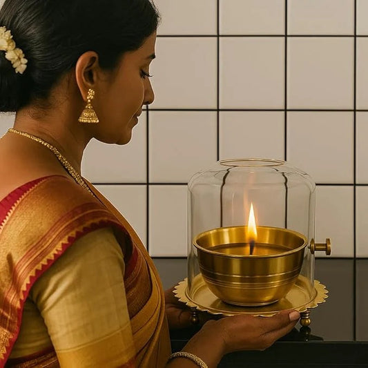 ShreeVarta® – Premium Golden Brass Akhand Diya with Rotating Wick